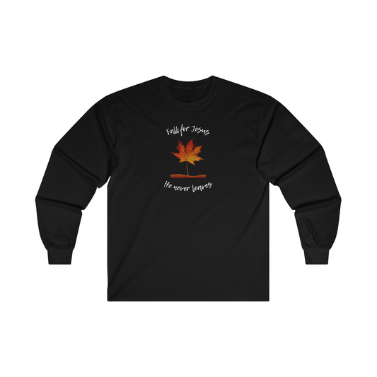 "Fall For Jesus He Never Leaves" Ultra Cotton Long Sleeve Tee